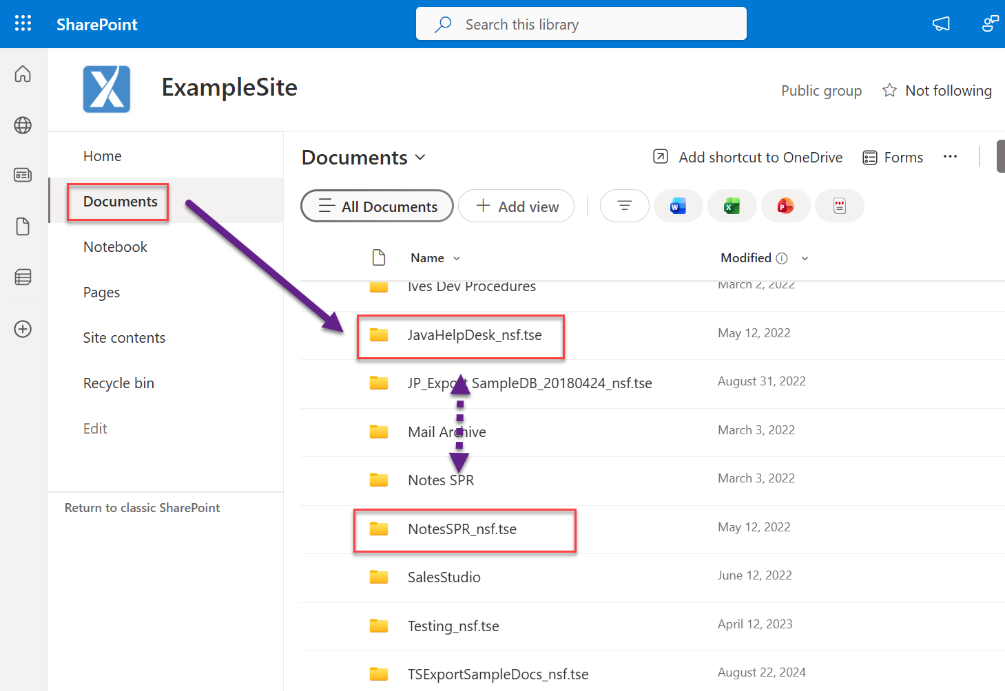 In this case both the JavaHelpDesk and NotesSPR databases contain external doclinks to one another and must be hosted from the same SharePoint site ‘ExampleSite’ document library.